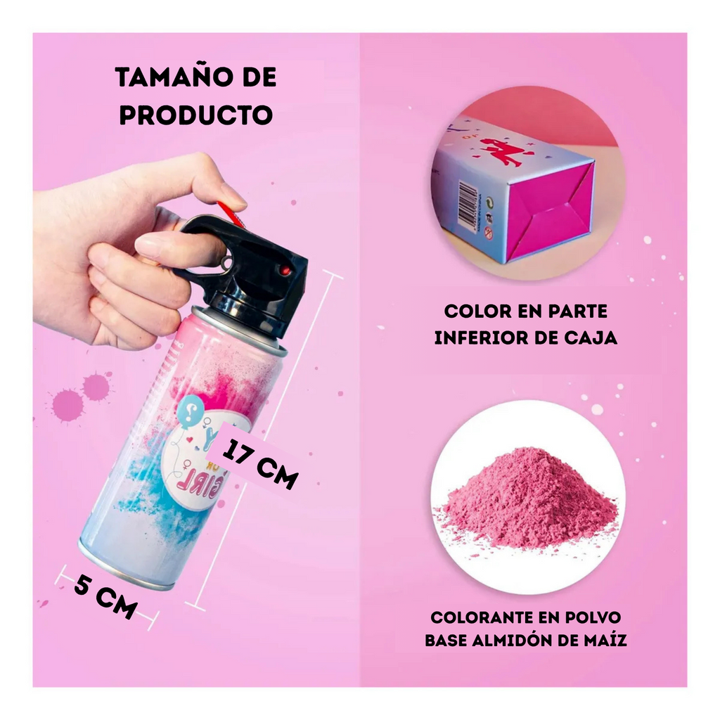 Spray Gender Reveal Polvos Holi tono Rosa